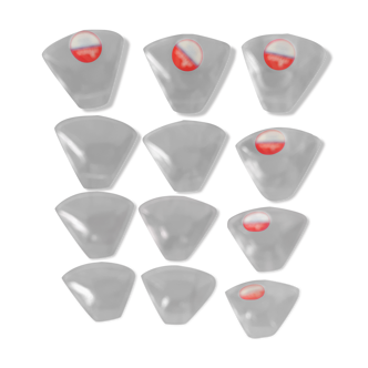Reggiani, pair of vintage appliques in white opaline and palissandre, circa 1960, italy. In very good condition. Size. Triangle base 37 cms side. Opaline 25 cms apart. Depth 8 cms. Original electrification ok.