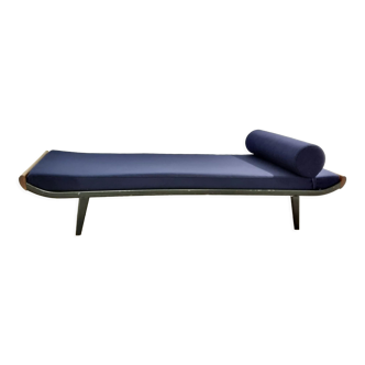 Bench by dirk cordemeyer from the 60s, 70s in teak and metal. Bottle green gray mattress. Daybed. Hallway bench. End of bed. Guest bed. Scandinavian bench.