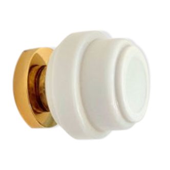 Wall lamp composed of a white opaline globe from an old kerosene lamp and a gilded pavilion. We love its vintage art deco shape! Diameter 11.5cm X depth 14cm. E14 max 40w socket (bulb not included). Golden metal pavilion diameter 10cm.