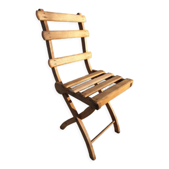 Folding armchair in the "Louis XIII" style, carved wood, low seat, one of the legs needs to be reinforced (see photo). Seat height 33 cm. Seat depth 43 cm. Seat width 42 cm. Total height from legs to backrest 94 cm. Folded: height 125 cm, width 42 cm, depth 15 cm. Delivery by carrier, contact me before purchase for a quote.