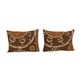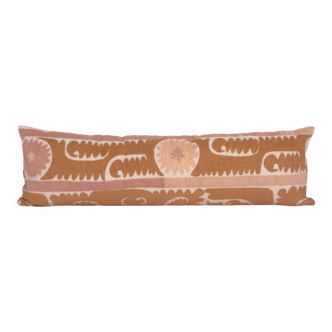 Turkish suzani pillowcase. Suzani is an exquisite fabric, each piece is unique but may also contain small imperfections; the charm of a handmade product. Material: hand-embroidered with silk threads on a cotton blend. The back of the suzani cushions is made with cotton blends and features a hidden zip closure. Condition: vintage. Origin: Uzbekistan. Handmade in Turkey. Dyed with natural dyes. Dry cleaning recommended. Measurements are approximately 19" X 36" (47 X 92 cm). Please note: the cushion insert is not included. Handle with care. Depending on your device's screen, the actual colours may differ slightly from the product images displayed. Reference: bk624.