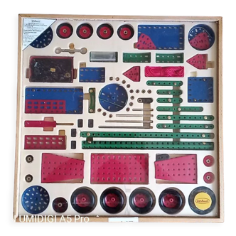 Suitcase sewing toy 1960 plasticized with various objects but not complete handle ok color a little yellowed so wear of time.
