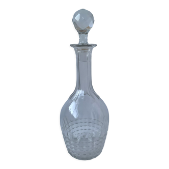 Pretty wine carafe in engraved glass round stopper from the 1950s. In excellent condition. Quick and neat delivery. Possibility of grouped shipments - more economical and more ecological! Dimensions: 24 x 11 cm.