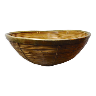 Rattan and brass fruit bowl 1970s