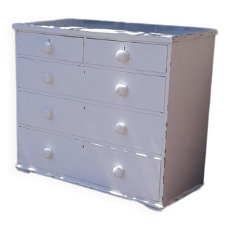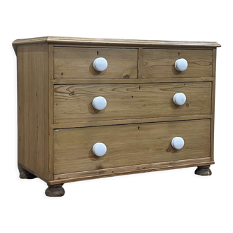 Old english chest of drawers fully sanded and left raw just vitrifie. Drawers perfect condition. Perfect in a room it will make its effect in a.corridor an entrance.