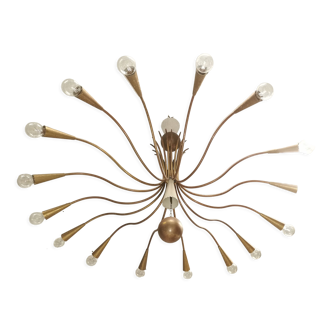 Very nice large 12-armed Mid Century Modern Brass Sputnik ceiling lamp