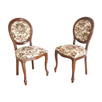 Old nanny chair redone. Black wood. Floral fabric on a black background. Upholstered seat with springs trim horsehair. Backrest trim horsehair. Back height 92cm. Seat height 48cp. Seat width 50cm.