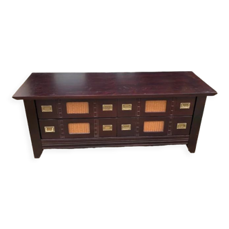 Nice old workbench equipped with 15 drawers. Crazy charm. Easily find its place in the living room or entrance. Trace of ancient multicolored painting bous reminding that this piece of furniture has a history. Depth 45cms, 56 with press. Remember to look at my other sales.