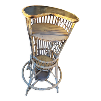 Bottle holder, portable bar in rattan from the 1960s. Overall good condition, with some minor signs of use (see photos). Dimensions: height 74 cm, width 39 cm, depth 28 cm. Weight 2 kg. Feel free to contact us for any further information and/or to make your offers. See my other items for sale.