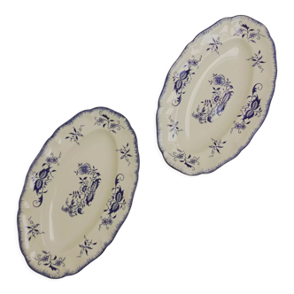 Oval dish in white earthenware with blue floral decoration. Unstamped. Very good condition. Dimensions: 27 X 14.5 cm. Height 4 cm. 0.4 kg.