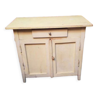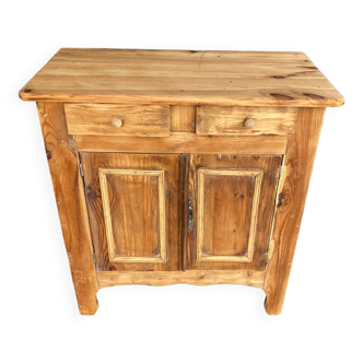 Height 58.5cm / Width 69cm / Depth 37.5cm // drawer height 6cm. This lovely mini Parisian cabinet with 2 doors and 1 drawer is in good overall condition; it has been fully stripped and sanded and left in raw wood, ready for you to customise to your taste. It contains a shelf. All the charm of vintage. To be collected in Villeneuve le Roi near Orly.