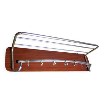 60s wall-mounted coat rack Vintage Sncf luggage rack 5 hooks In gold-plated aluminum and scoubidou wire In very good original general condition H 13 L 63 D 28.