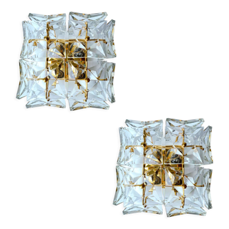 Set of 2 wall lamps gold crystal and brass Palwa Germany 1950