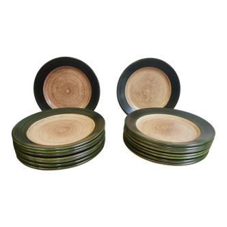 Set of 6 vintage dessert plates in chiseled glass. They look similar but are not exactly the same. There are 3 different models (2 of each model). One of the models is flatter than the other 2. Very good general condition. One of the plates has a few scratches visible in the light (see last photo). Diameter 17.5 / 18 cm. Weight 1.7 kg. Careful and very protected shipping.