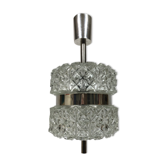 A 1960s pendant light, made of glass and metal. All the pieces have been cleaned.