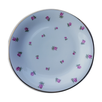 Hollow dish in very good condition. Floral pattern. Golden borders. A small snag on the underside (see last photo).