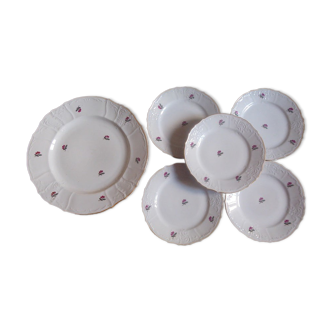 Set of 6 vintage porcelain dinner plates. Very refined and elegant decor, white and gold. Ideal for a holiday table. Hard porcelain. French porcelain company. 1960s. Very good condition. Well preserved gilding. Possible knife marks visible in the light. I can make a batch with more plates upon request. Diameter 24 cm. Weight 2.5 kg. Other parts from the same service for sale in my ads.