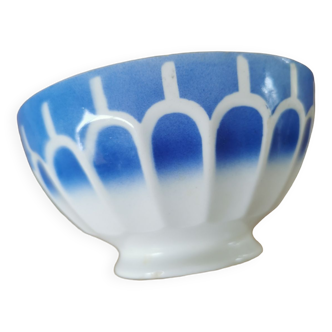 Old faceted bowl on earthenware pedestal. Digoin spirit. Good condition, small traces of time and use. Diameter 14 cm - height 7.5 cm. Shipping possible with shipping costs in supplements.