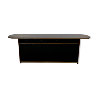 Contemporary black lacquered buffet with shelves and drawer. 2 doors. Good condition. Top tray length 280cm. Body length of the buffet 200cm. Depth 50cm. Height 70cm.