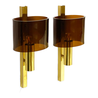 Gaetano Sciolari Large Wall Sconces / Sconces, Chrome, Brass, Glass, 1970s