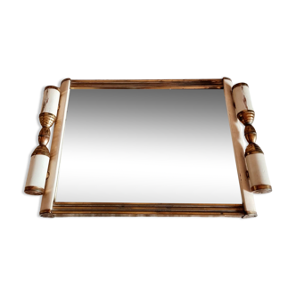 Art deco mirror tray, rectangular in shape, in wood and gilded metal, bottom in wood and silver ice, in good condition.