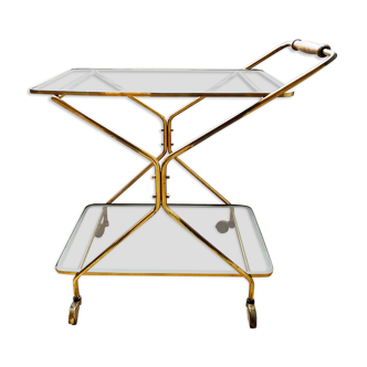 Served in green and golden wrought iron, from the 50s, with its removable top. The 2 levels are covered with a glass top. In a good state of conservation, pretty patina of time, some traces of use.