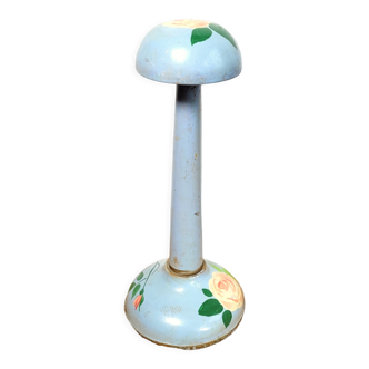 Pair of vintage wooden hat stands. France, circa 1940-1950. Old display hat stands, made of turned wood, preserved in their original paint. Height: 26 cm. Diameter of the base: 9 cm. Vintage patina (cracks, signs of wear).