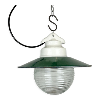 Beautiful wrought iron and glass lamp, suitable for candles or other lighting. Comes with a hook.