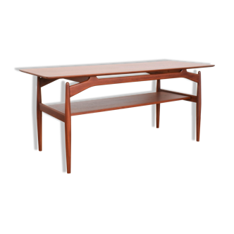 This vintage coffee table from the 60s and 70s is iconic of the designer Joseph Andre MOTTE. It is white and unfolds to become a low or high table for 6 people. Coffee table dimensions: 47 x 94 cm and height 50 cm. Dining table dimensions: 142 x 94 cm and height 70 cm. It is distinguished by its black lacquered metal mechanism and brushed steel square legs, featuring white wood and melamine panels that can unfold to become a dining table accommodating 6 people. Four configurations are possible: low position not unfolded, low position unfolded, high position not unfolded, and high position unfolded. It is in perfect condition except for a scratch on the top visible in my photos, but it should be able to be repaired. Please feel free to contact me for more information or photos. NO MARKING OR LABEL FROM THE DESIGNER ON THE TABLE.