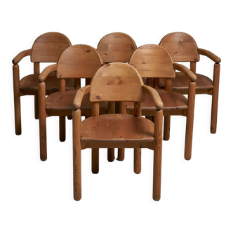 Scandinavian armchair in solid pine by rainer daumiller. 1970s. The varnish shows multiple traces of scratches and impacts but the general condition is good. Can be completely sanded to look like new. Seat height 44cm.