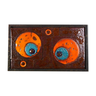 This is a very special wall lamp from the 1970s to brakelmann & becker arnsberg. It consists of an elongated black slate plate, on which is mounted an abstract ceramic relief in the colors brown, pink and cream. An led lamp with a mirrored head looks the best. 2 led bulbs are included with the lamp. The lamp is in very good condition, no damage. Fully functional and in perfect condition.
