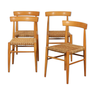 Set of two type “316” chairs, designed by Peter Hvidt & Orla Mølgaard Nielsen for Søborg Møbler, Denmark, 1960s. These feature teak frames and a rare rattan weave instead of the usual papercord. Both chairs have a logo brand stamp and are of high-quality workmanship. The set is in used condition with only slight signs of aging and wear, such as a few scratches and dents. One wooden strut has been touched up, and one rattan strip has been replaced on each chair. The weave is intact on both chairs. The price is for the set of two. Please note: colours may vary slightly depending on your device/screen. Shipping within Germany is free; for other EU countries, please request a transport quote.