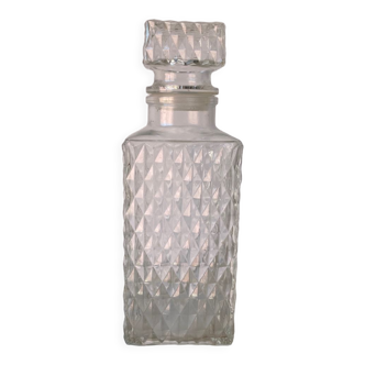 Jolie carafe en verre transparent avec des sphères taillées dans le verre, donnant un bel effet visuel une fois remplie d'alcool. Le haut du bouchon et la base de la carafe présentent une étoile découpée dans le verre. Le bouchon large est muni d'une bande en plastique - il s'insère très fermement dans le cou. Exempt de fissures ou d'éclats, une pièce décorative pour un bar. *veuillez envoyer un message pour connaître les options de livraison pour les pays non répertoriés. Une expédition combinée peut être organisée.