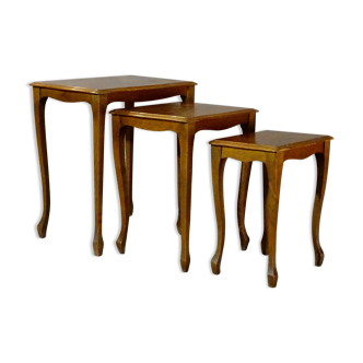 Set of 3 rustic nesting coffee tables in Louis XV style from 1950.
