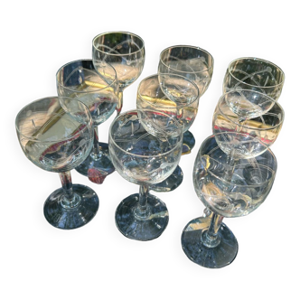 Set of 6 vintage 20th century cut crystal stemmed glasses