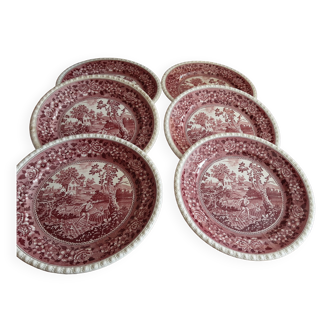 Set of 7 dessert plates "eid" england very pretty pink decor, bucolic countryside scene with sheep very good condition! Diameter: 20 cm weight of the lot: 2400 gr.