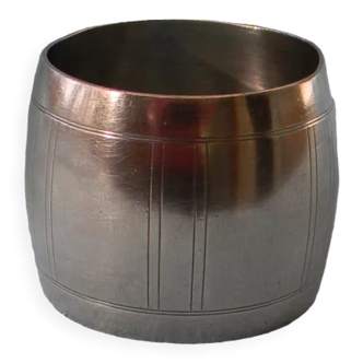 Series of two solid wood boxes or pots, art deco style. Nice shape with grooves. The boxes are made of two assembled parts, hence the vertical groove in the middle. Pretty chocolate-colored patina. Dimensions of the smallest: h16 / larger h17.5, for both base diameter 8cm, diameter at the largest 9.5cm.