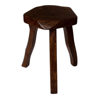 Beautiful antique brutalist tripod stool in solid wood. Beautiful patina! I invite you to visit my Selency shop to discover a beautiful selection of vintage products! Thank you!.