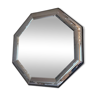Designer octagonal mirror. Work from the 70s. The metal frame has a beautiful patina. The whole is in good condition. The alterations from use are very rare and discreet (very light and superficial scratches in places, small injuries to the metal on the upper edge at the corners not perceptible when the mirror is placed, small marks perceptible on the curved part of the top. See photos and zoom in ). The total height of the mirror is 54.5 cm. The total width is 48.5 cm. Ice cream in very good condition.