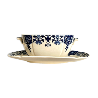 Pair of fine porcelain teacups and golden vegetable decore. > saucer d17cm, cups d12h6cm.