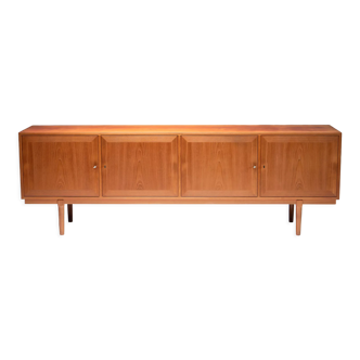 Solid oak tv cabinet scandinavian inspiration contemporary manufacturing, perfect condition tv cabinet all in solid oak, natural varnished finish sliding doors with curtains, compass foot dim of the model in photo width 1m60 X depth 0m45 X height 0m50.