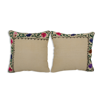 Set of 2 cushions printed vichy, white and light gray. Perfect in a chic / shabby countryside décor. Handmade, comfortable, dimensions 38x38 cm. Very good condition.