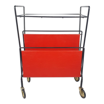 Beautiful bauhaus rolling magazine rack from the 80s. The structure is made of chromed metal and black leather. In very good condition dimensions: -42 cm length -27 cm depth -62 cm height very beautiful piece: ).