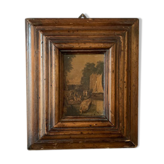 Small gilded wooden frame with seascape, 1850, perfect condition, 20x15x4 cm.