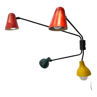 Wall light with two straight pivoting arms by Serge Mouille Creation 1954 Reissue numbered 17-1061 This light being a second-hand piece, it may show signs of wear or scratches, testifying to its past use in a living room.