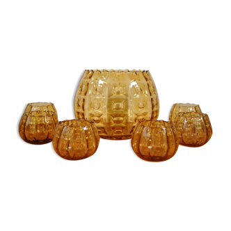 Yellow glass vase, with an original design by its "bubbles" in relief, for bouquets of dried or fresh flowers. Dimensions: height 18cm/diameter 9cm.