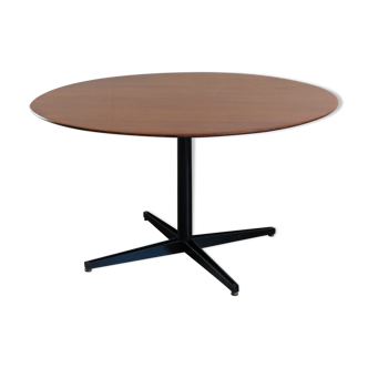 Very nice round coffee table, manufactured by artifort. This solid and high quality table is made with the best materials. The wooden laminated plate is in good condition with the normal using spots, the same for the metal foot. It is originally marked under the plate.