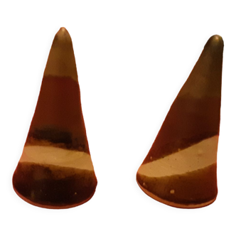 Series of 12 ceramic knife holders from the 50s in the shape of poodles. Vintage colors that will liven up the table: turquoise, cream, pink, brown... Two dogs have been glued together, see last photo. Length of a doggie: 9cm.