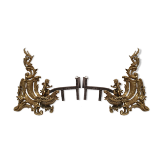 Pair of bronze andirons stamped bouhon frères in louis xvi style