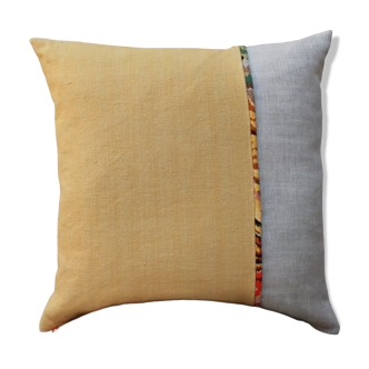 This beautiful yellow cushion with white highlights has a white graphic pattern that will give warm to a living room or bedroom. The back of the cushion is yellow. This cushion is designed in an ethical and supportive way: vegetable dyeing on local cotton, yarned by hand and then weaving in the region in a centre forming the hard of hearing with traditional weaving. This cushion was made in france in a sewing workshop that reinted women. Composition - entretien. Cotton cushion cover sold with its cushion interior made in the jura from microfibre in silicon polyester fiber. White zipper - white piping. Colors: yellow and white. Dimensions: 40 X 40 cm. Washing in cold water recommended and rinsing in water containing 1/3 of white vinegar. This product being handmade, it is unique and may be different from the photo.